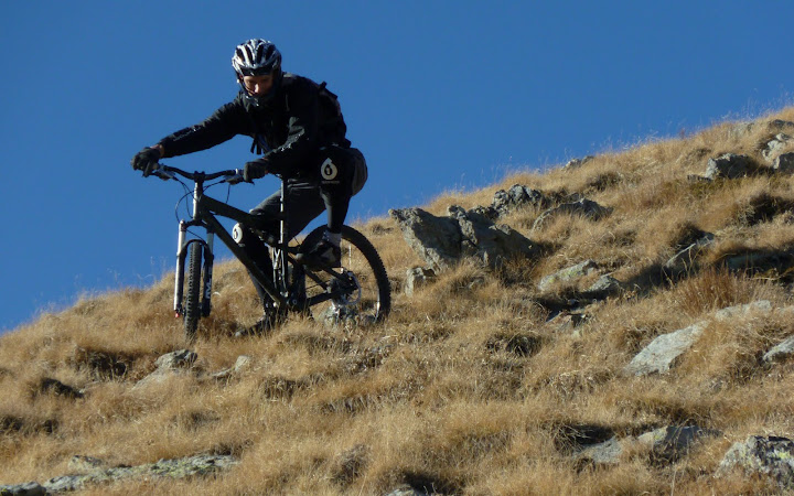 Pres de la balise 345, une epingle nous offre un defi que malheureusement je n’aurai meme pas le loisir de tenter puisque je me gamelle 10 metres avant en essayant de trouver mes cales. Resultat, un bel OTB et le velo qui descend 20m plus bas. Pas de bobo, ni pour moi, ni pour le velo. De toute facon elle compte pas cette epingle car le temps de chercher mon velo, on se rend compte que c’est pas par la 🙂
